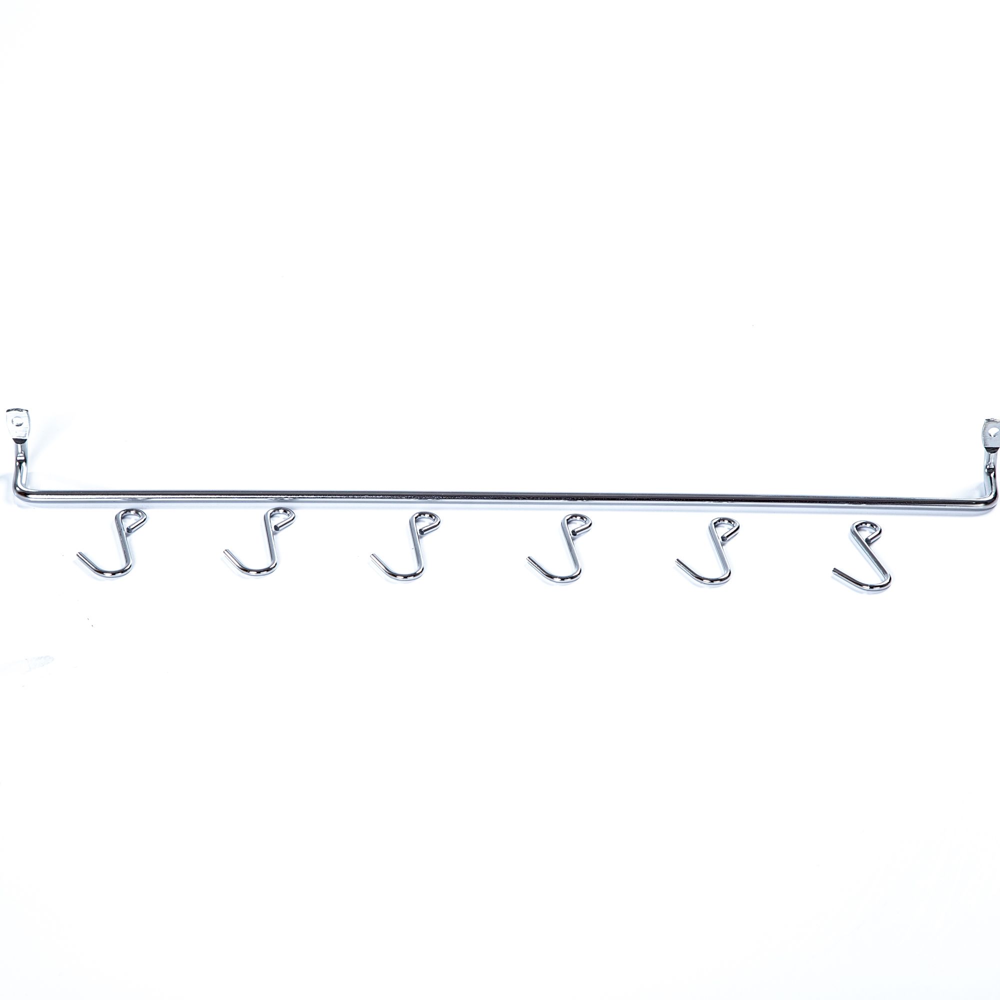 Barra em aço cromado com 6 ganchos para utensílios de cozinha, ótima pedida para organizar e deixar sua cozinha mais bonita.