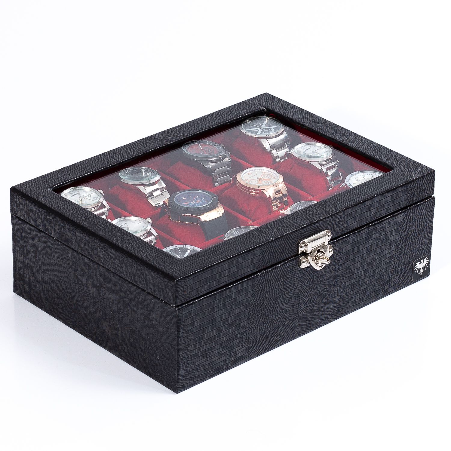 Caixa para relógios 12 divisórias grandes, linha couro ecológico ORIGINAL Total Luxo.