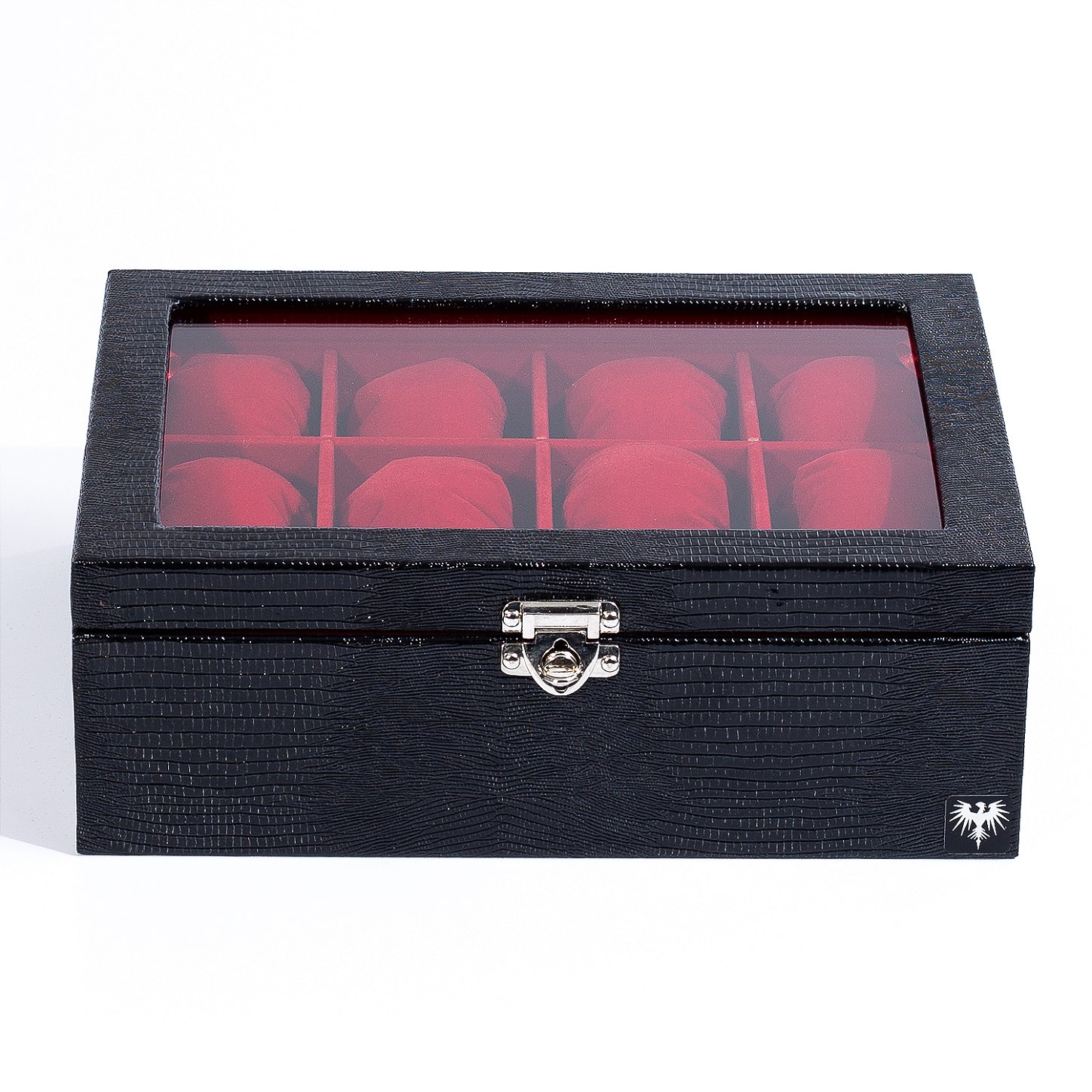 Dispõe de um acabamento interno todo revestido em veludo para deixar sua coleção mais segura possivel.