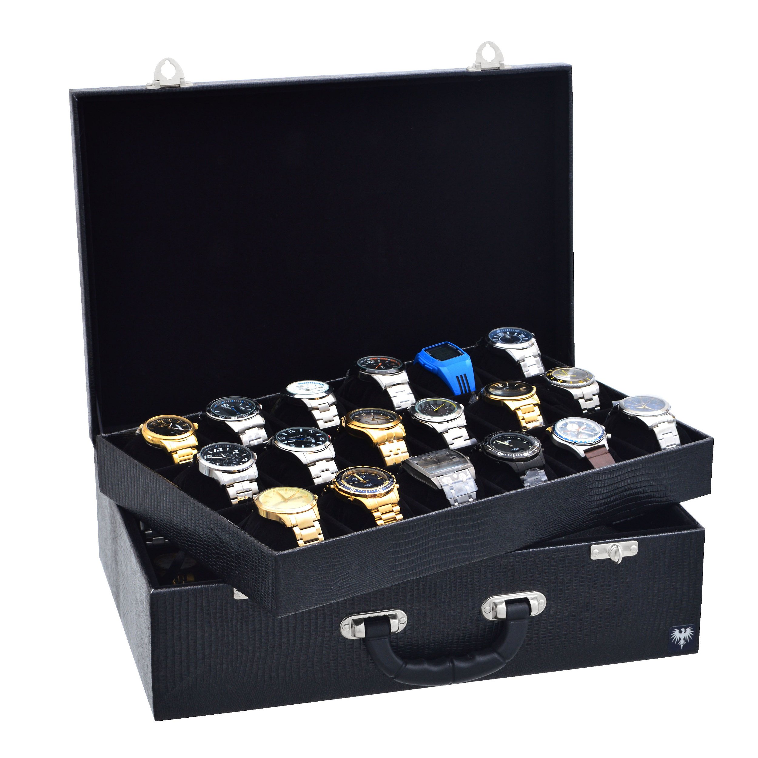 Maleta para Relógios 36 Divisórias Couro Croco |Preto Preto
