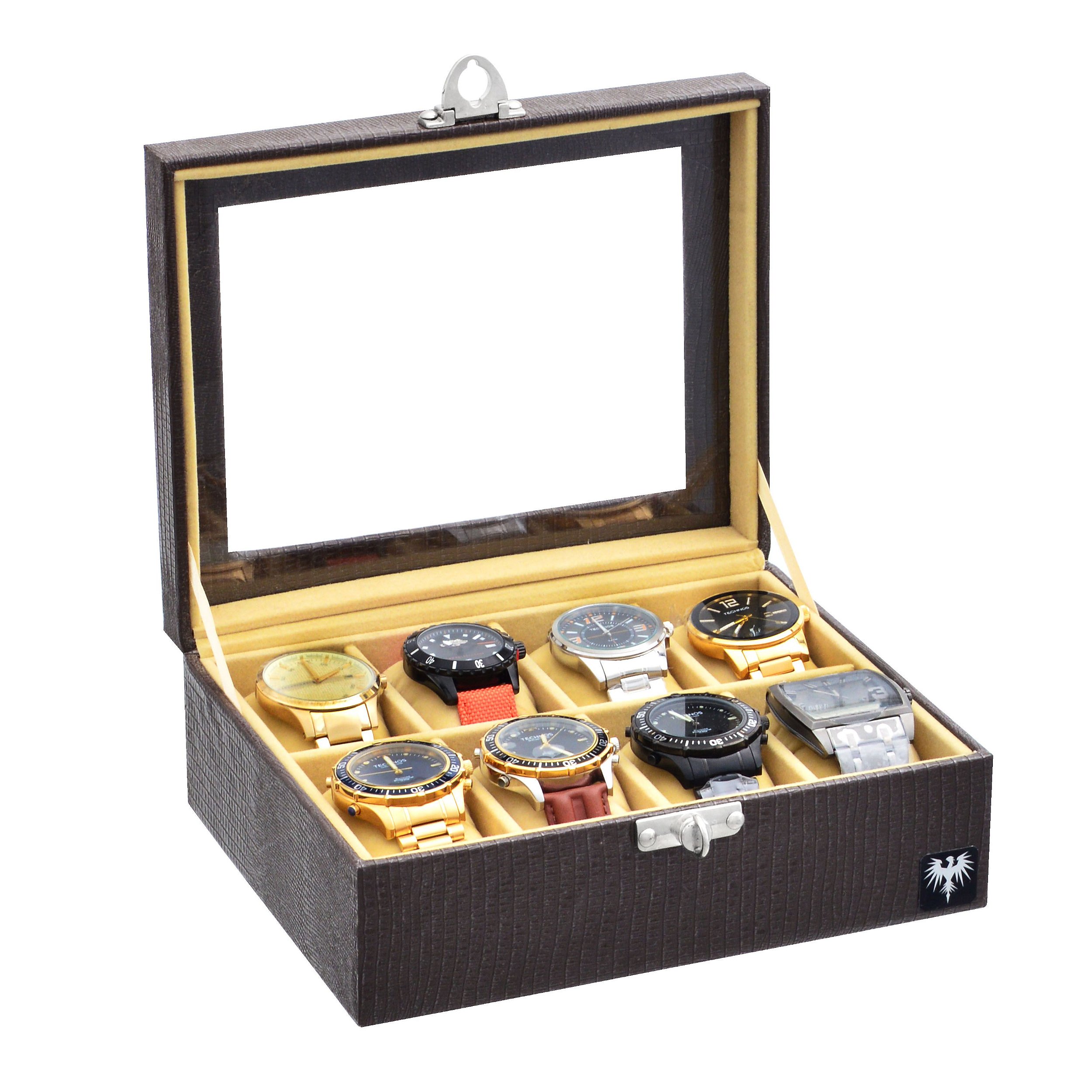Porta Relógio Em Couro Estojo de 8 Nichos | Marrom Bege